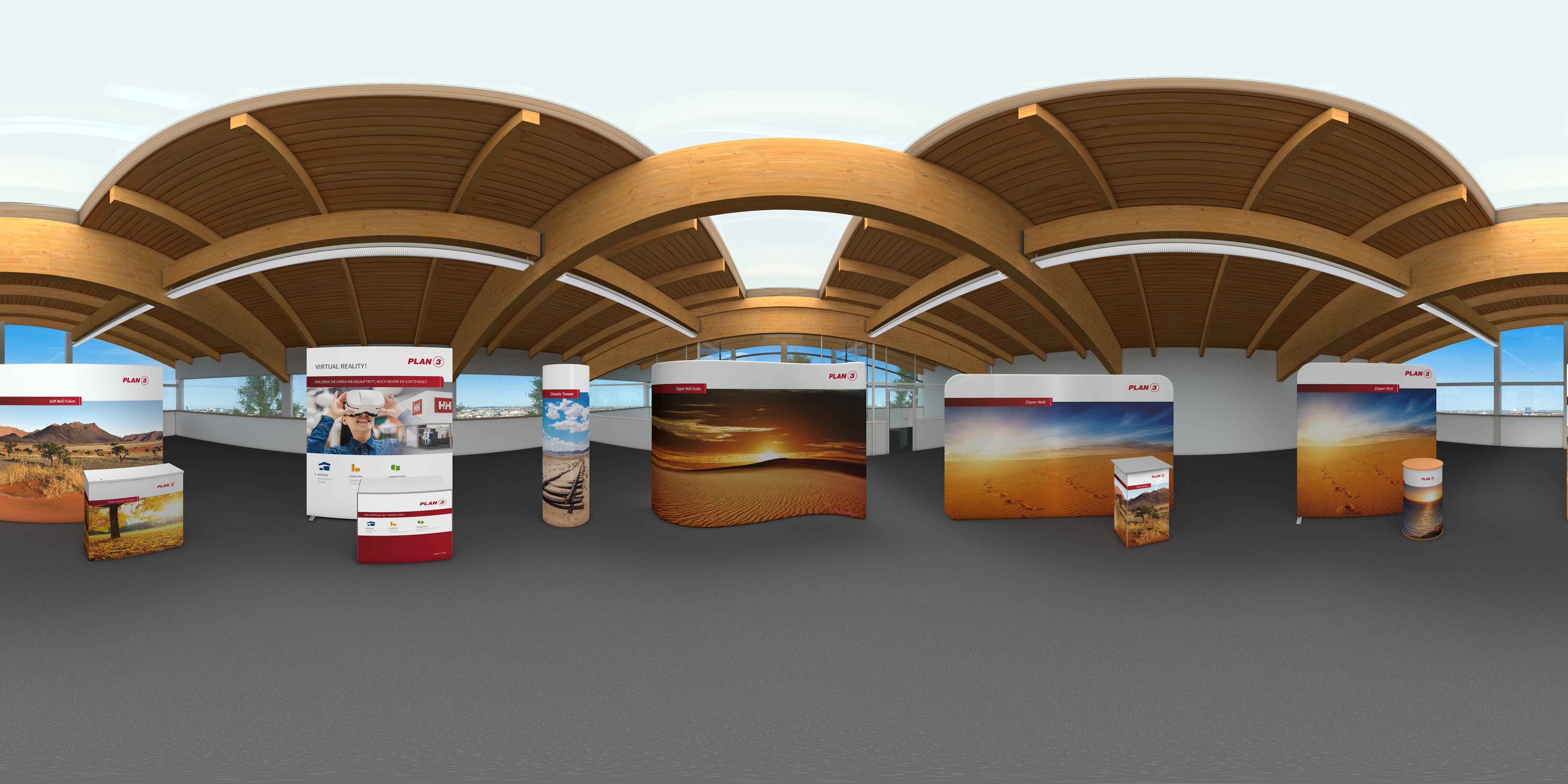 Sie haben bereits eine VR Brille für Ihr Smartphone? Dann können Sie gleich loslegen und einen 360° Rundgang machen! In nur wenigen Schritten ermöglichen wir Ihnen den virtuellen Besuch einiger Räumlichkeiten und Messestände.